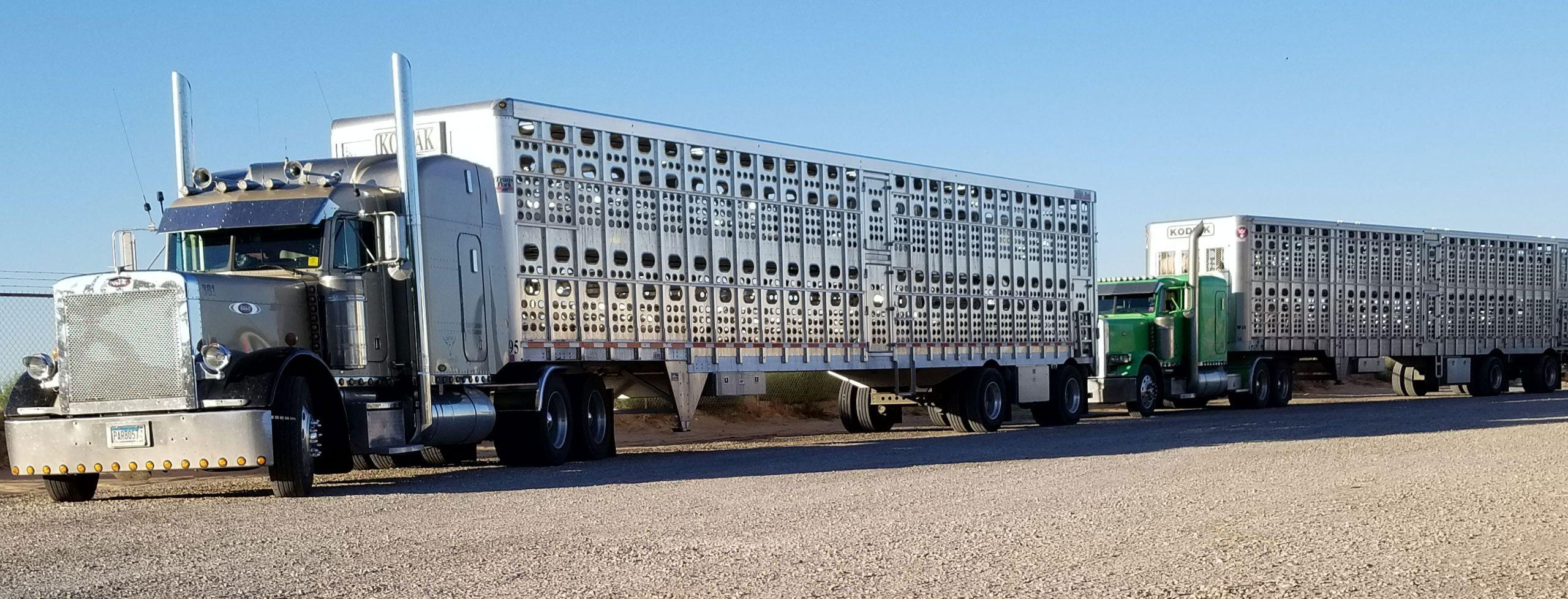 Our fleet is made of all newer Volvo trucks and with our own DOT certified mechanic on hand, they are maintained and always ready to roll. Our trailers currently operate a range of different types of trailers, again, always well maintained and updated to avoid breakdowns and to deliver the pigs in style.